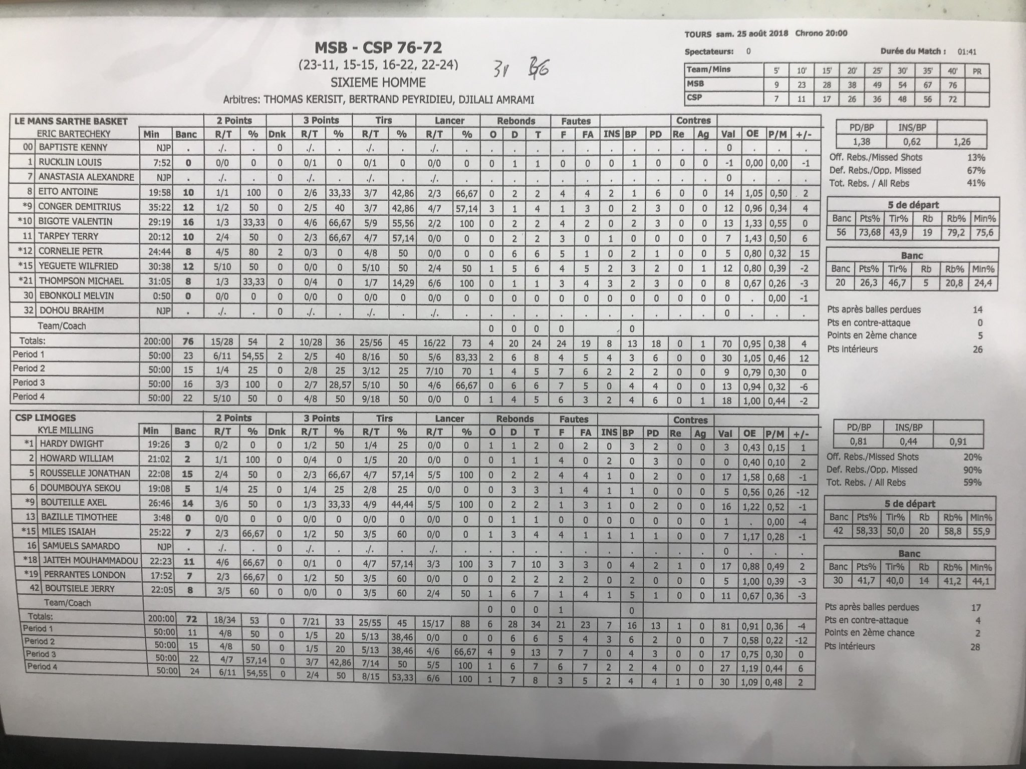 - notre trio français conservé (Jaiteh/Howard/Bouteille) et qui font partie des tout meilleurs JFL du championnat.